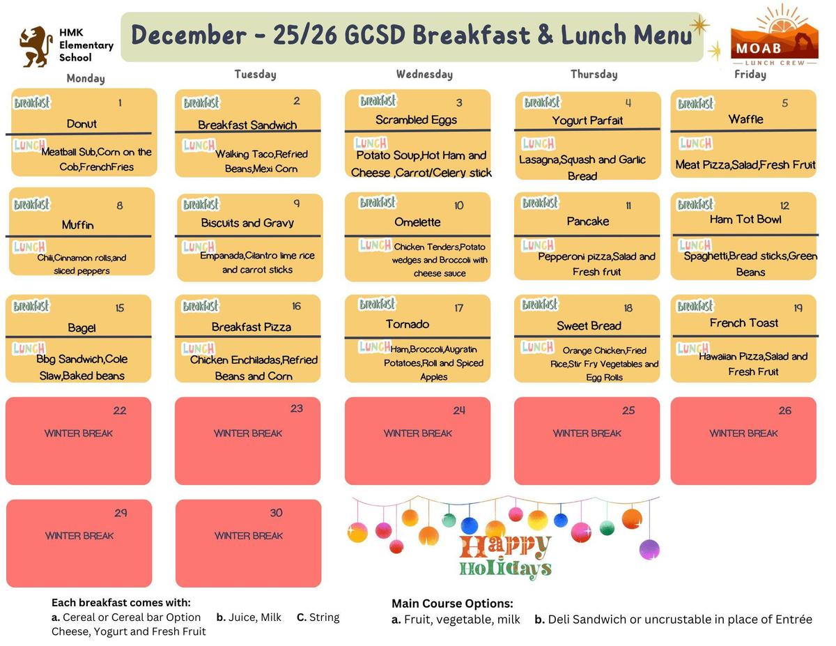 December Menus